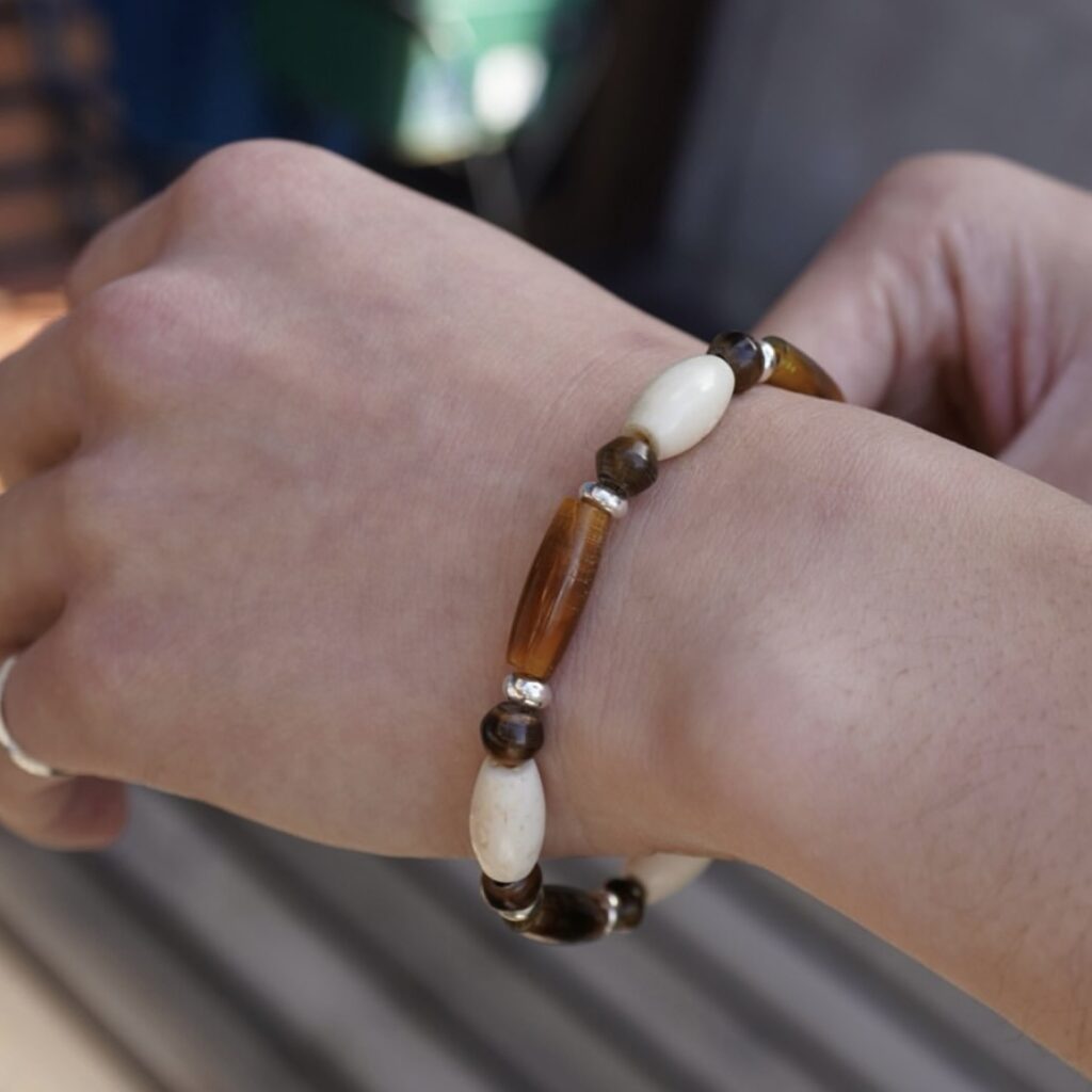 ホワイトとブラウンのホーンビーズ、sv925製のビーズを組み合わせた