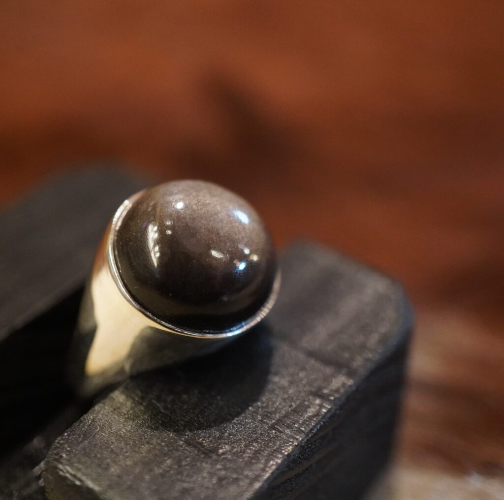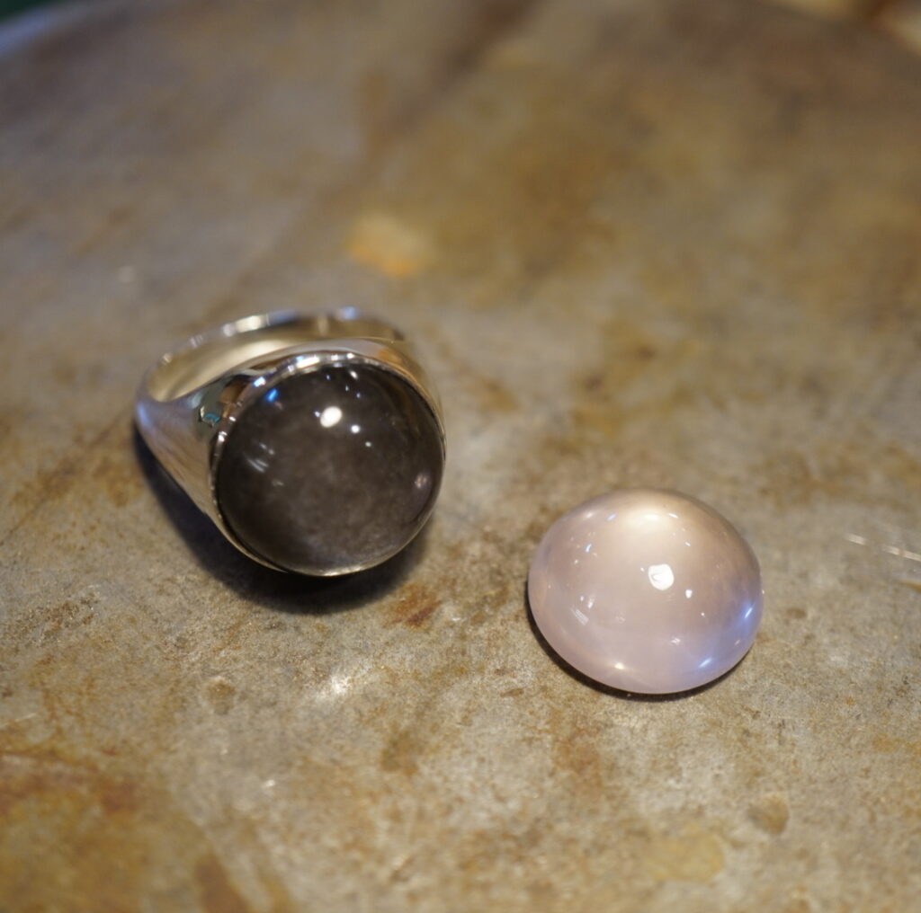 元々留まっていたローズクォーツを外し、オブシディアンに変えて加工しました。