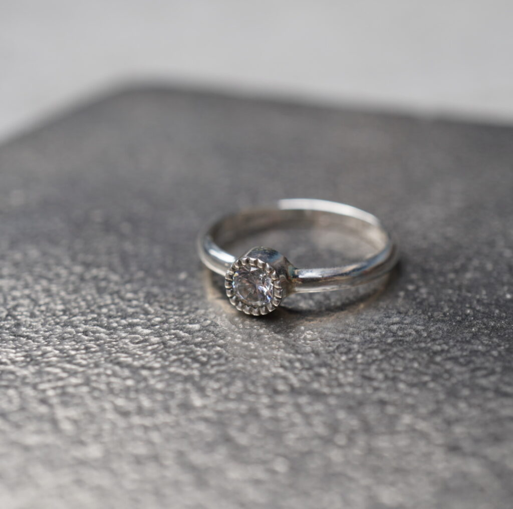 元々のリングは石座に新たな金属を足し、号数を合わせてシンプルなリングへ