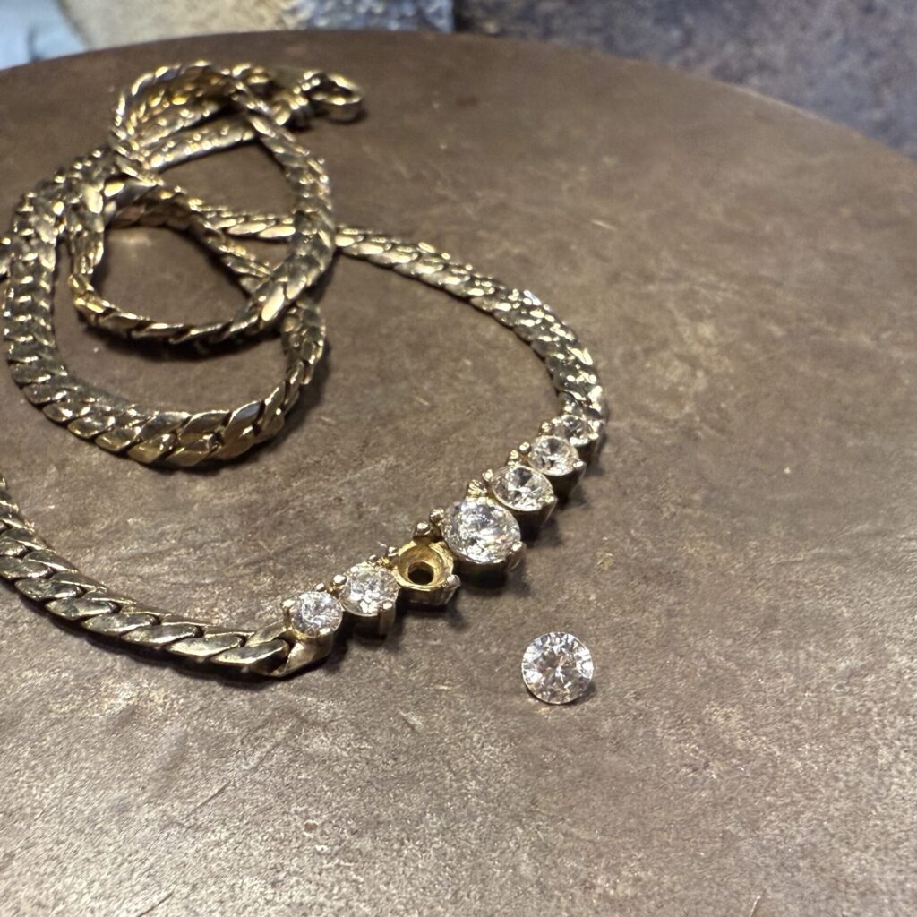 中心にあったメインのダイヤはネックレスへと加工いたしました。