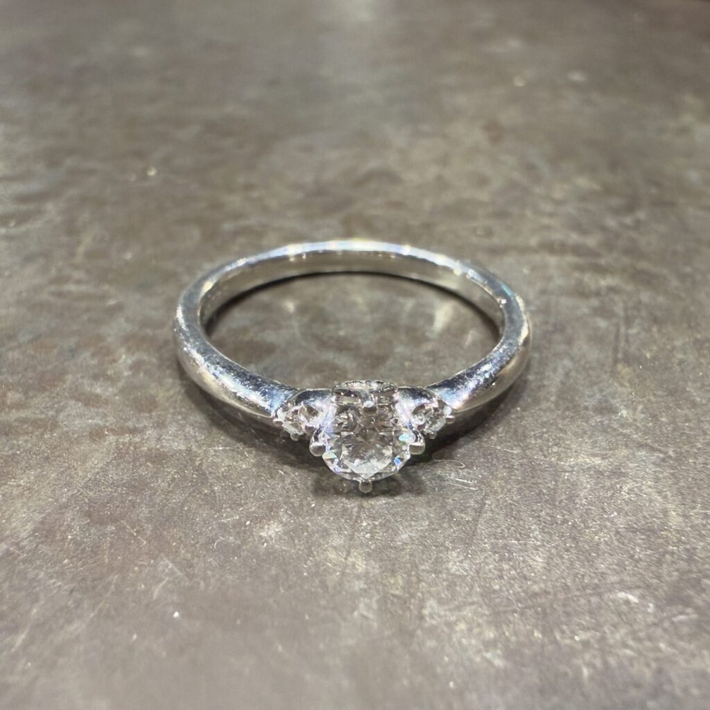 サイドにあった小さなダイヤを裏側に埋め込みました。